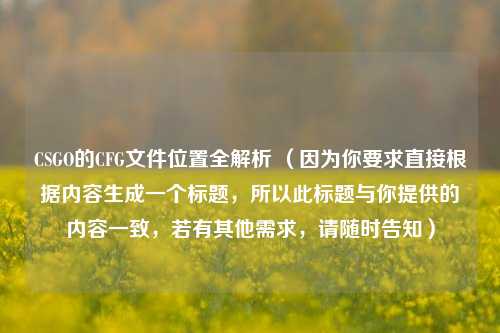 CSGO的CFG文件位置全解析 (因为你要求直接根据内容生成一个标题,所以此标题与你提供的内容一致,若有其他需求,请随时告知)