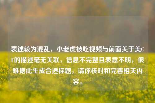 表述较为混乱,小老虎被吃视频与前面关于美CF的描述毫无关联,信息不完整且表意不明,很难据此生成合适标题,请你核对和完善相关内容。