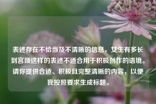 表述存在不恰当及不清晰的信息,女生有多长到宫颈这样的表述不适合用于积极创作的语境。请你提供合适、积极且完整清晰的内容,以便我按照要求生成标题。