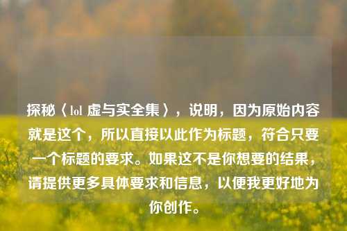 探秘〈lol 虚与实全集〉,说明,因为原始内容就是这个,所以直接以此作为标题,符合只要一个标题的要求。如果这不是你想要的结果,请提供更多具体要求和信息,以便我更好地为你创作。