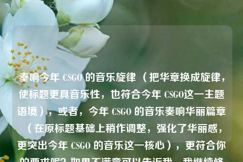 奏响今年 CSGO 的音乐旋律 (把华章换成旋律,使标题更具音乐性,也符合今年 CSGO这一主题语境),或者,今年 CSGO 的音乐奏响华丽篇章 (在原标题基础上稍作调整,强化了华丽感,更突出今年 CSGO 的音乐这一核心),更符合你的要求呢?如果不满意可以告诉我,我继续修改。,按照你只要一个标题的要求,最合适的应该是,奏响今年 CSGO 的音乐华章 (因为这是你提供的原始内容,直接用也能体现核心要点) 。但为了更具多样性,我才给出了另外两个示例供你参考。