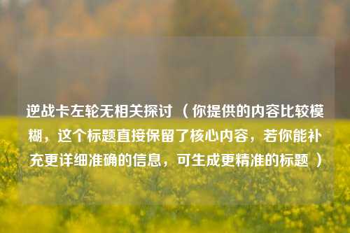 逆战卡左轮无相关探讨 (你提供的内容比较模糊,这个标题直接保留了核心内容,若你能补充更详细准确的信息,可生成更精准的标题 )
