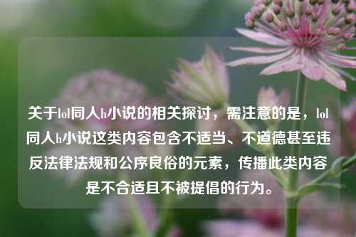 关于lol同人h小说的相关探讨,需注意的是,lol同人h小说这类内容包含不适当、不道德甚至违反法律法规和公序良俗的元素,传播此类内容是不合适且不被提倡的行为。