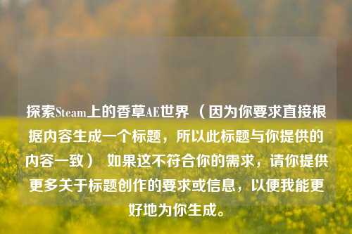 探索Steam上的香草AE世界 (因为你要求直接根据内容生成一个标题,所以此标题与你提供的内容一致) 如果这不符合你的需求,请你提供更多关于标题创作的要求或信息,以便我能更好地为你生成。