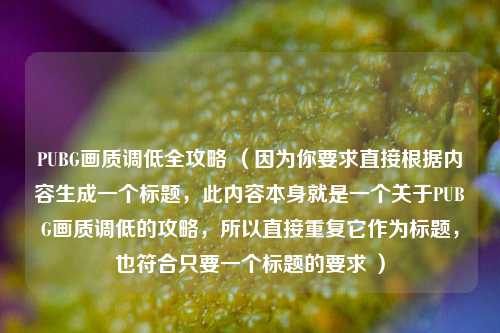 PUBG画质调低全攻略 (因为你要求直接根据内容生成一个标题,此内容本身就是一个关于PUBG画质调低的攻略,所以直接重复它作为标题,也符合只要一个标题的要求 )
