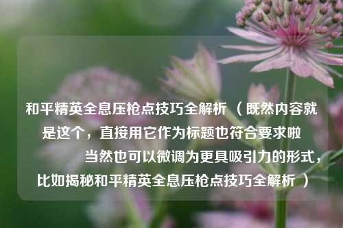 和平精英全息压枪点技巧全解析 (既然内容就是这个,直接用它作为标题也符合要求啦😉 当然也可以微调为更具吸引力的形式,比如揭秘和平精英全息压枪点技巧全解析 )